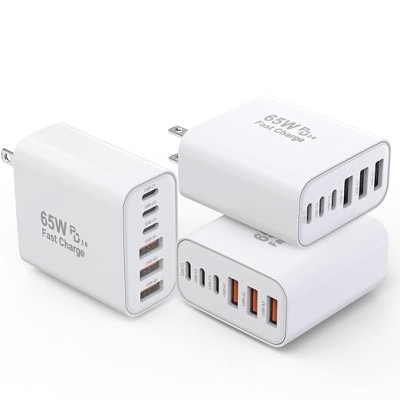 3 Pack 65W GaN Type C Wall Charger Block,6-Port Fast Charging Block,PD USB C Plug Adapter+QC Plug Compatible with Apple iPhone 17/17 Air/16E/16Pro